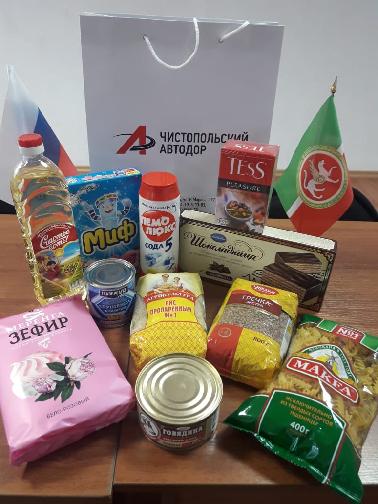 Еще одна дорожная организация Татарстана - «Чистопольский Автодор» оказала помощь людям, которые пострадали в период самоизоляции. 50 многодетных и малоимущих семей поселка Луч, сел Малый Толкиш, Большой Толкиш и Старое Ромашкино Чистопольского района получили наборы с необходимыми продуктами и моющими средствами.