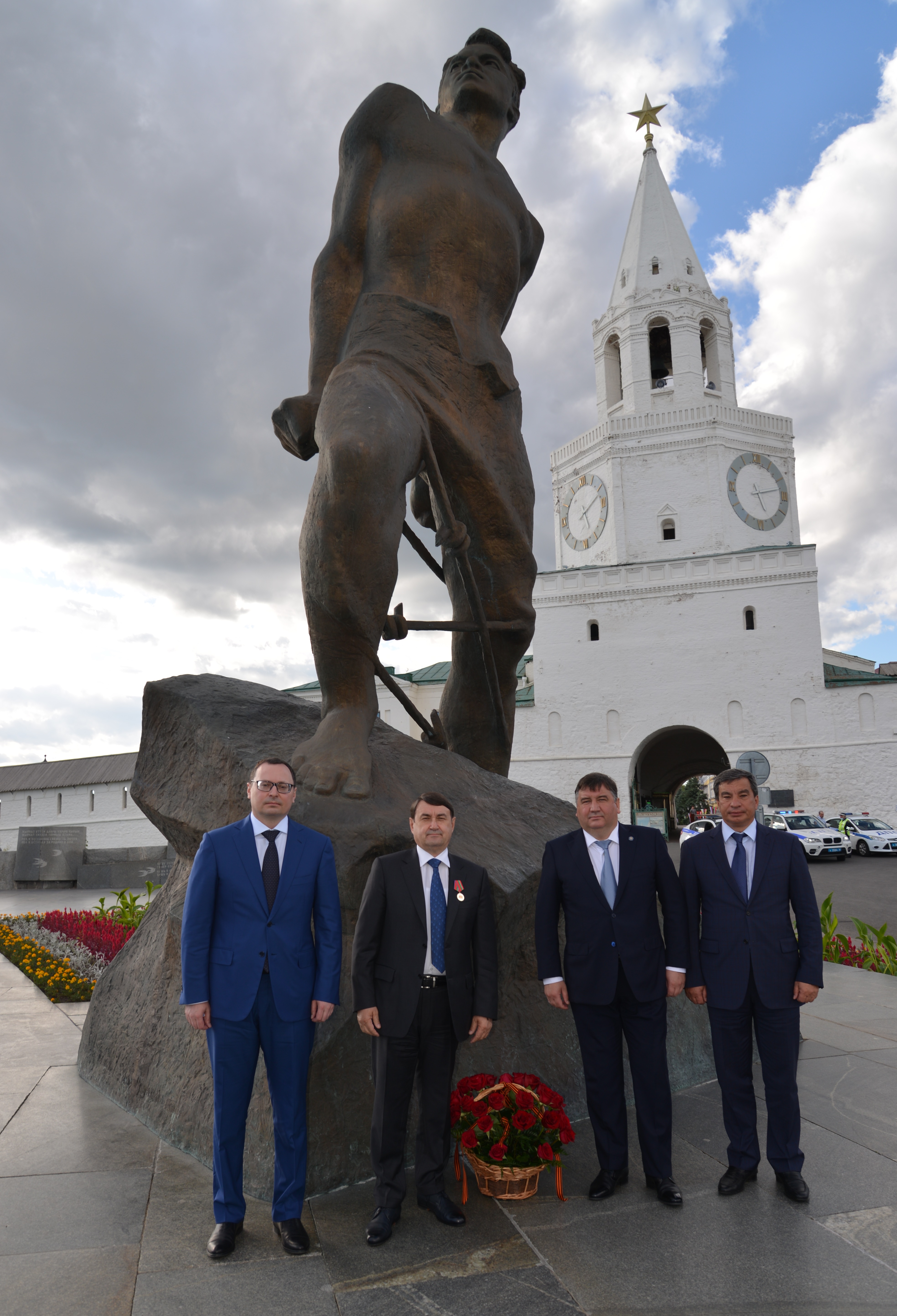 Сегодня помощник Президента России Игорь Левитин, заместитель министра транспорта Российской Федерации - руководитель Федерального дорожного агентства Андрей Костюк и министр транспорта и дорожного хозяйства Республики Татарстан Ленар Сафин возложили цветы к памятнику татарскому поэту, Герою Советского Союза Мусе Джалилю в Казани.